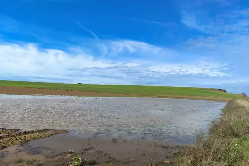 Les persistents pluges registrades des de finals del 2025 i primers d’any per les contínues borrasques han fet aflorar la llacuna natural del Clot de la Unilla, entre Almenar i Alguaire.